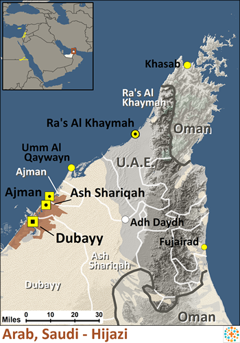 As vozes árabes do deserto, os Hijazi, contam muito sobre sua vida e cultura enquanto vagam pelos desertos rigorosos dos Emirados Árabes Unidos com seus camelos, ovelhas e cabras, sua principal fonte de sustento. Sentados ao redor de fogueiras do lado de fora de suas tendas, geralmente feitas de pelo de cabra ou camelo, costumam recitar poemas ou cantar músicas acompanhados por um alaúde (oud), flauta ou tambor, e falar sobre sua história ou sua vida. As mulheres são particularmente habilidosas nessa arte. Embora tenham poucos bens, um que é importante é sua vasilha de café. A maioria considera trabalhos braçais como degradantes. No entanto, elas têm aceitado empregos remunerados em regiões urbanas para melhorar suas vidas em relação a moradias e oportunidades médicas e educacionais.